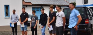 Rekordeintritt von 6 Azubis auf einmal; Verkehrsminister Thomas Webel gratuliert zum Jubiläum.